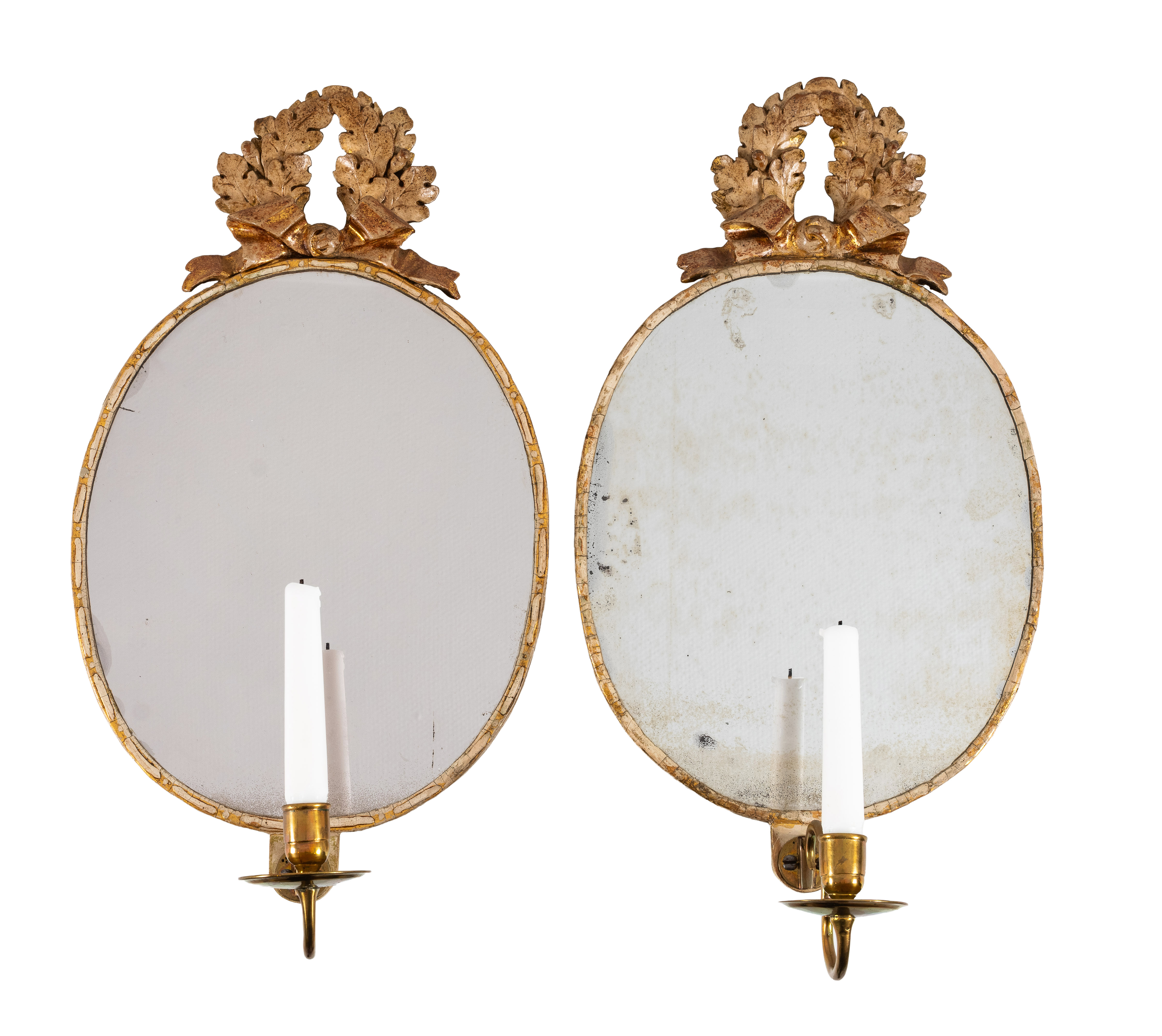 Et par gustavianske speillampetter av Johan Åkerblad (mester i Stockholm 1758-1799). Vurdering 20.000-30.000 med minstepris 15.000. Selges på Nyborgs Vårauksjon Del I. Foto: Nyborgs auksjoner